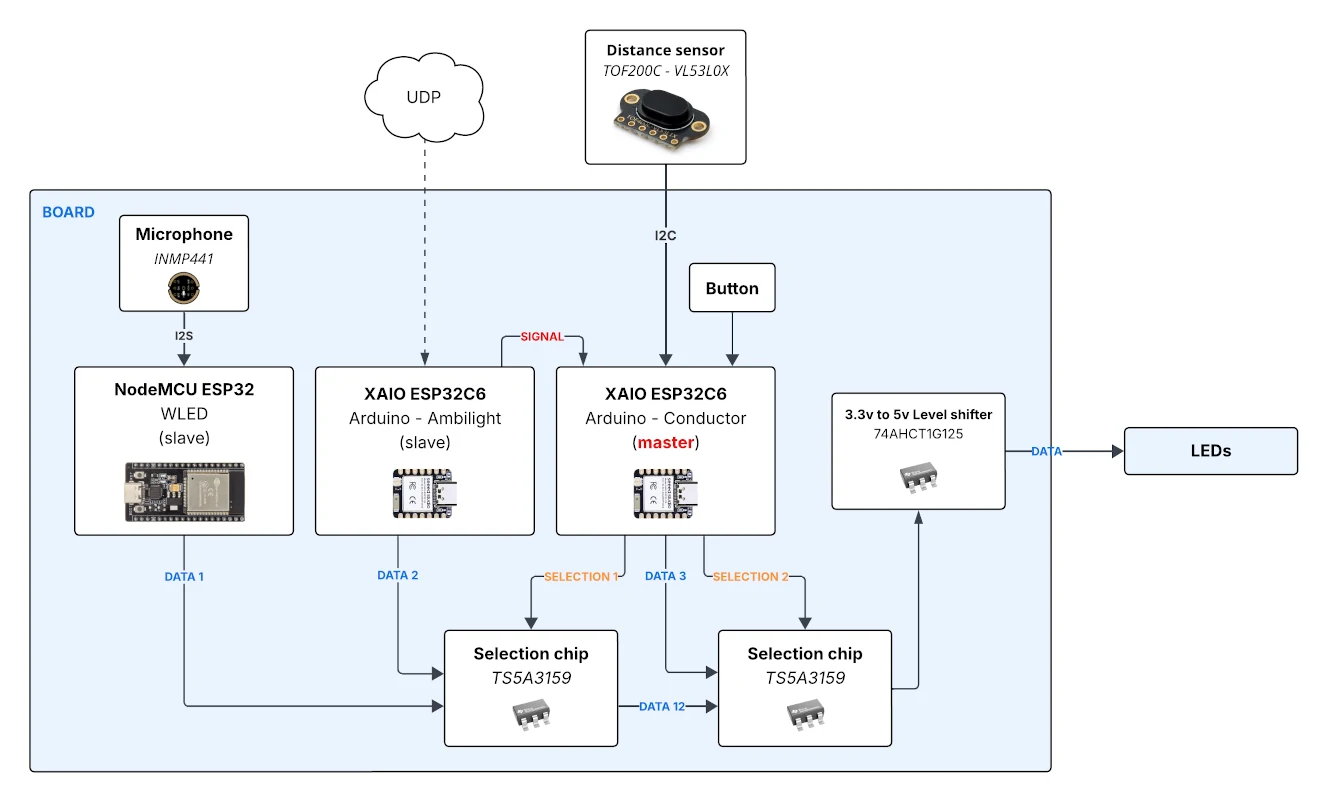 I made an board that integrates this project with WLED (with sound detection). Click on the image to see more